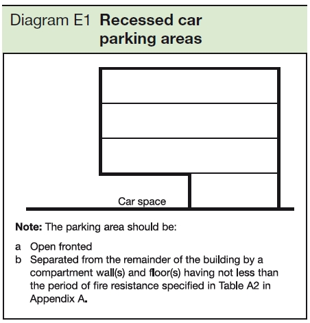 Approved document B2, Diagram E1, car parking in recessed areas