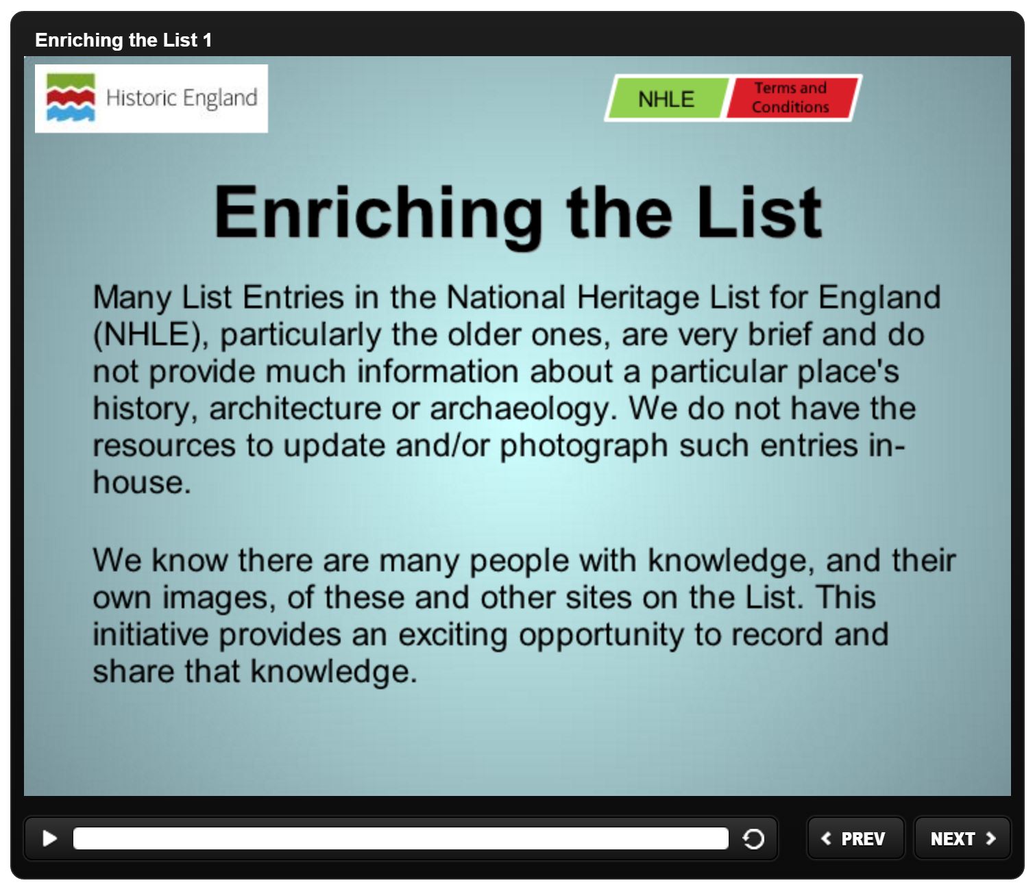 Historic England Enrich the List website