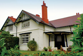 Rigbys pair of cottage houses at Little Switzerland. He intended this design to be repeated on small housing estates at Ramsey and Port Erin, but this was the only pair to be built. The two small windows on the front elevation let light into an inglenook. The distinctive curved porch was not used by any other architect on the island. (Photo: Fiona Newton) Source Armitage Rigby, the overlooked architect in IHBCs Context 153, published in March 2018. It was written by Peter Kelly. https://ihbconline.co.uk/cont_arch/?p=1050