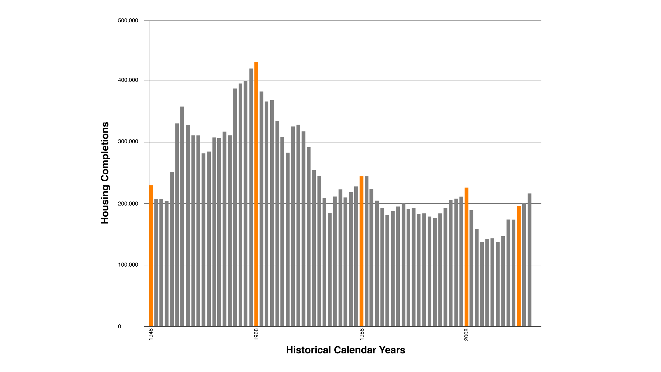 Graph showing Housing Completions in the UK 1948-2020.