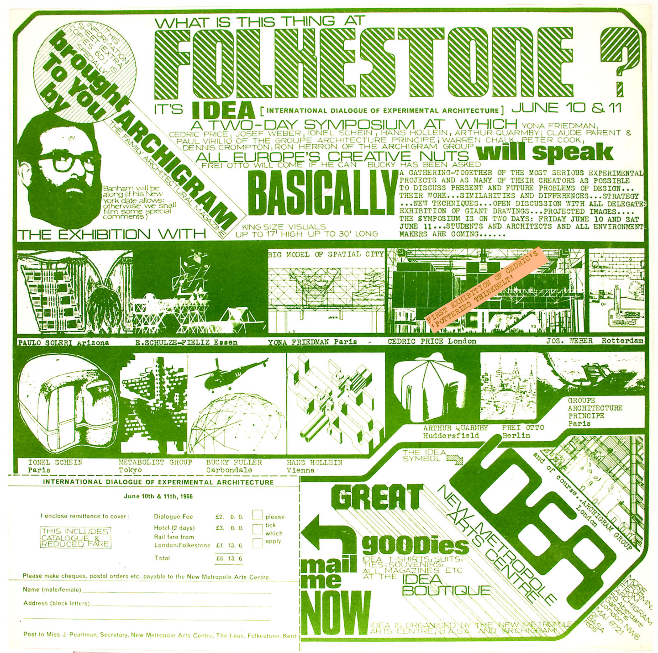 Composite image: circular highlighting the first instance in a series of self-financed research and client-less projects by Cedric Price.
